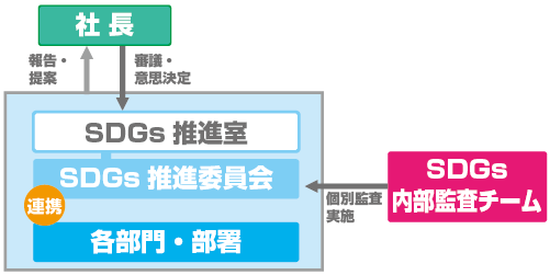 また、SDGs内部監査チームを別途設置し、SDGs運用体制の適正性を確保するための監査を行っています。